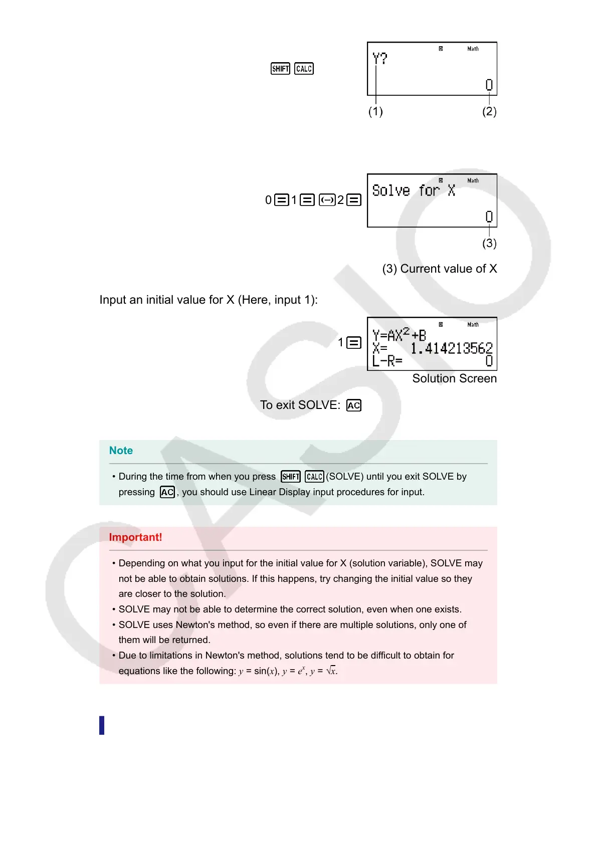 • During the time from when you press (SOLVE) until you exit SOLVE by