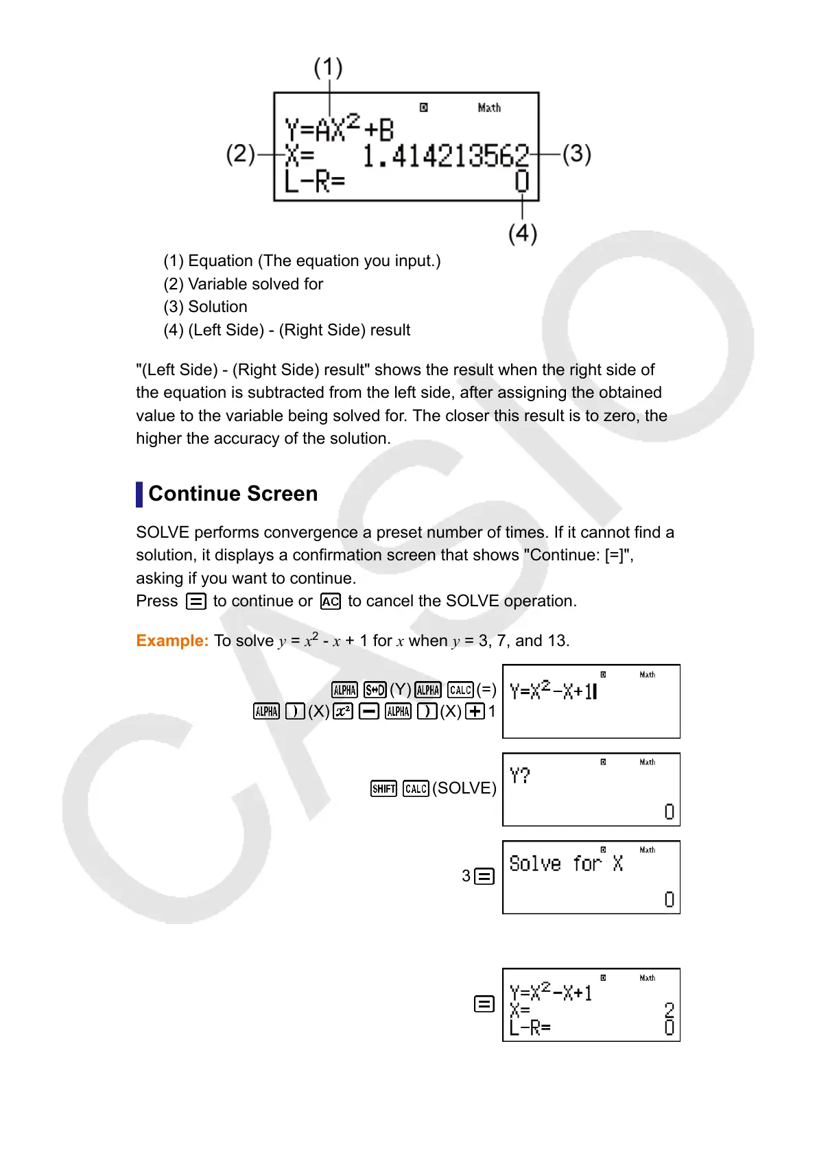 solution, it displays a confirmation screen that shows "Continue: [=]",