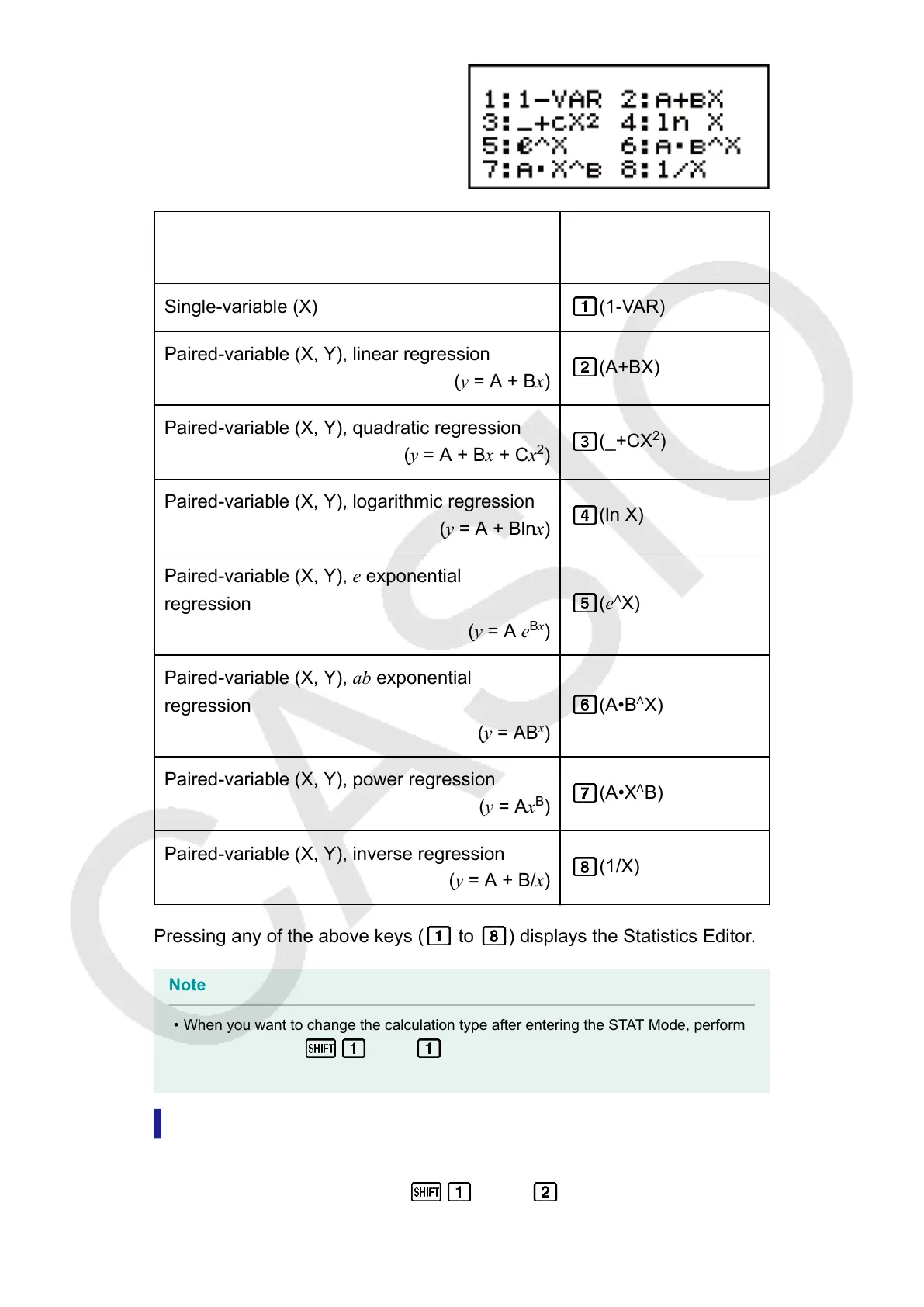 • When you want to change the calculation type after entering the STAT Mode, perform