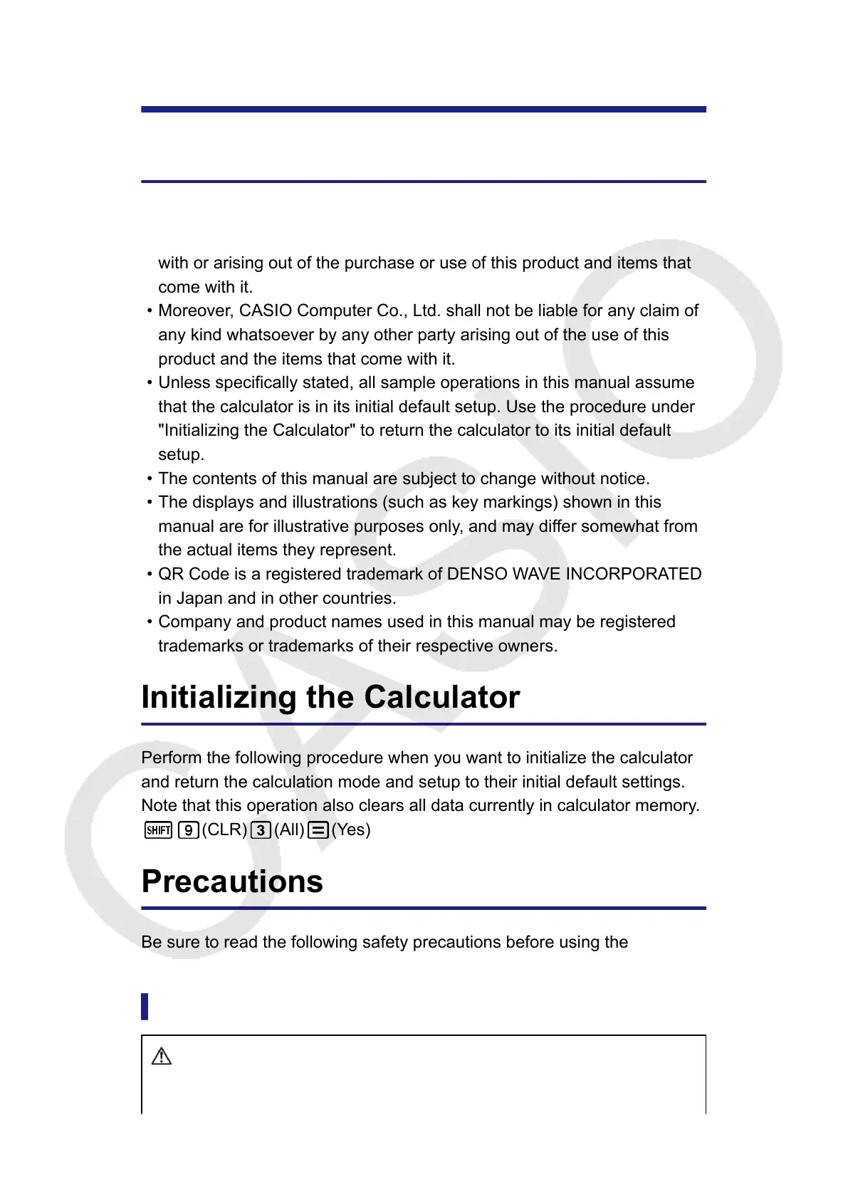 • Moreover, CASIO Computer Co., Ltd. shall not be liable for any claim of