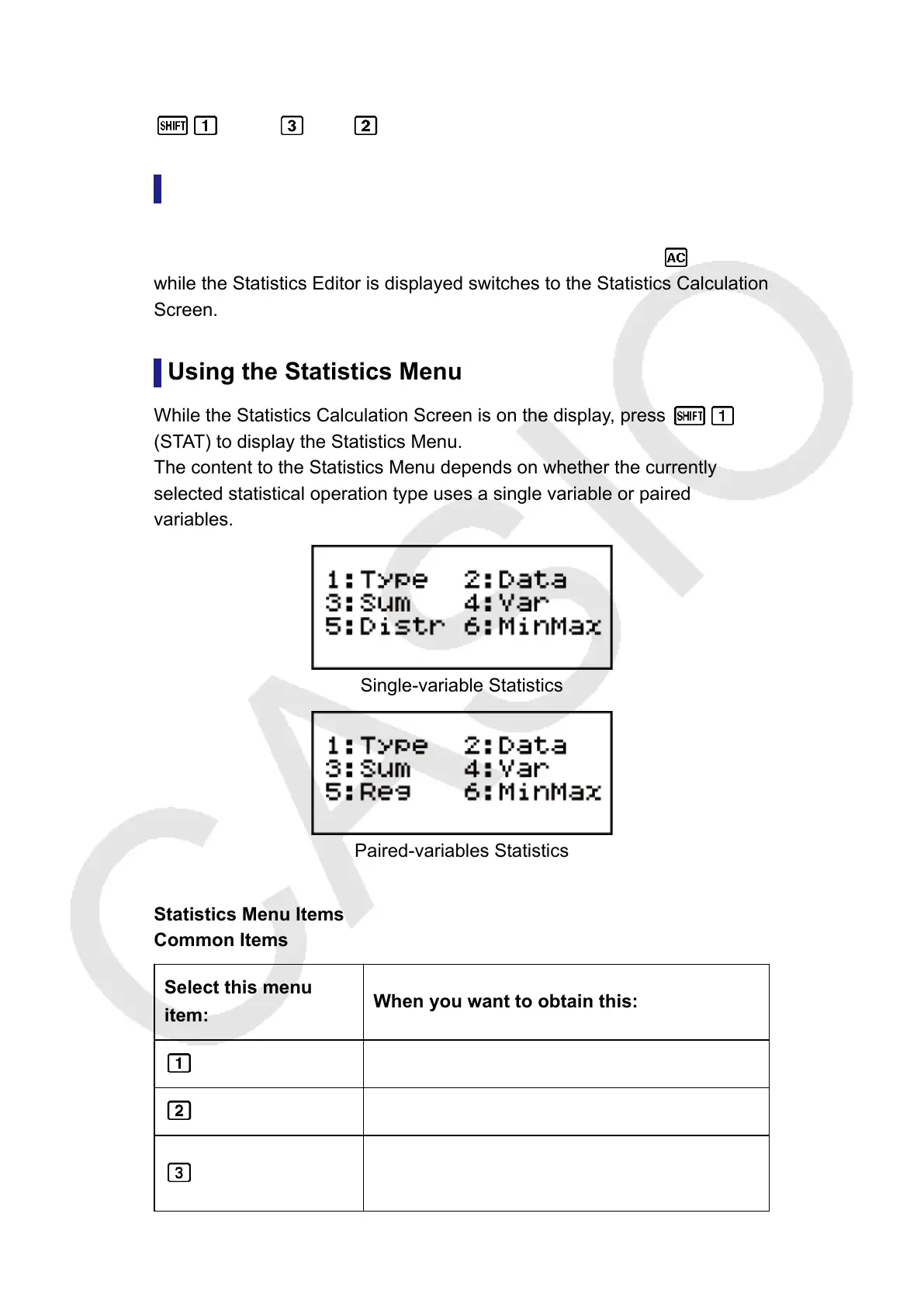 while the Statistics Editor is displayed switches to the Statistics Calculation