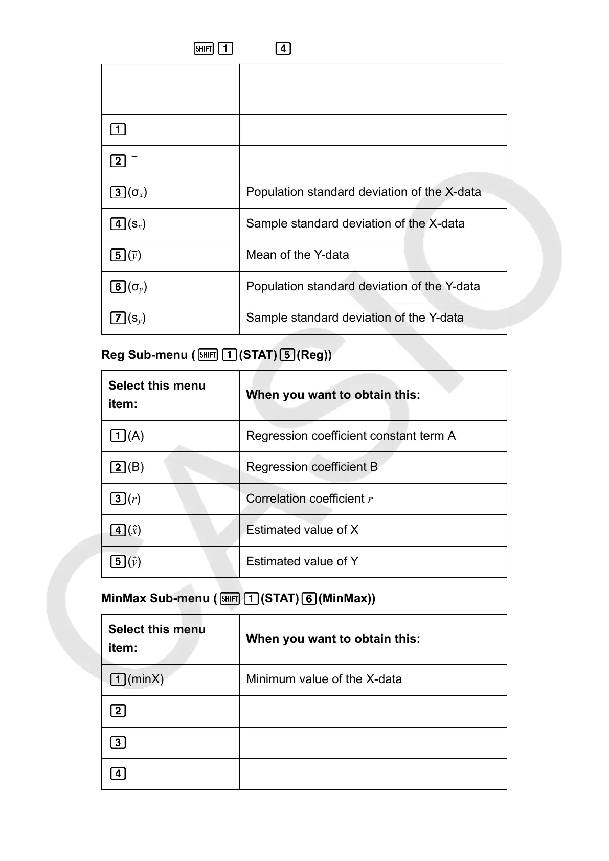 Reg Sub-menu ( (STAT) (Reg))