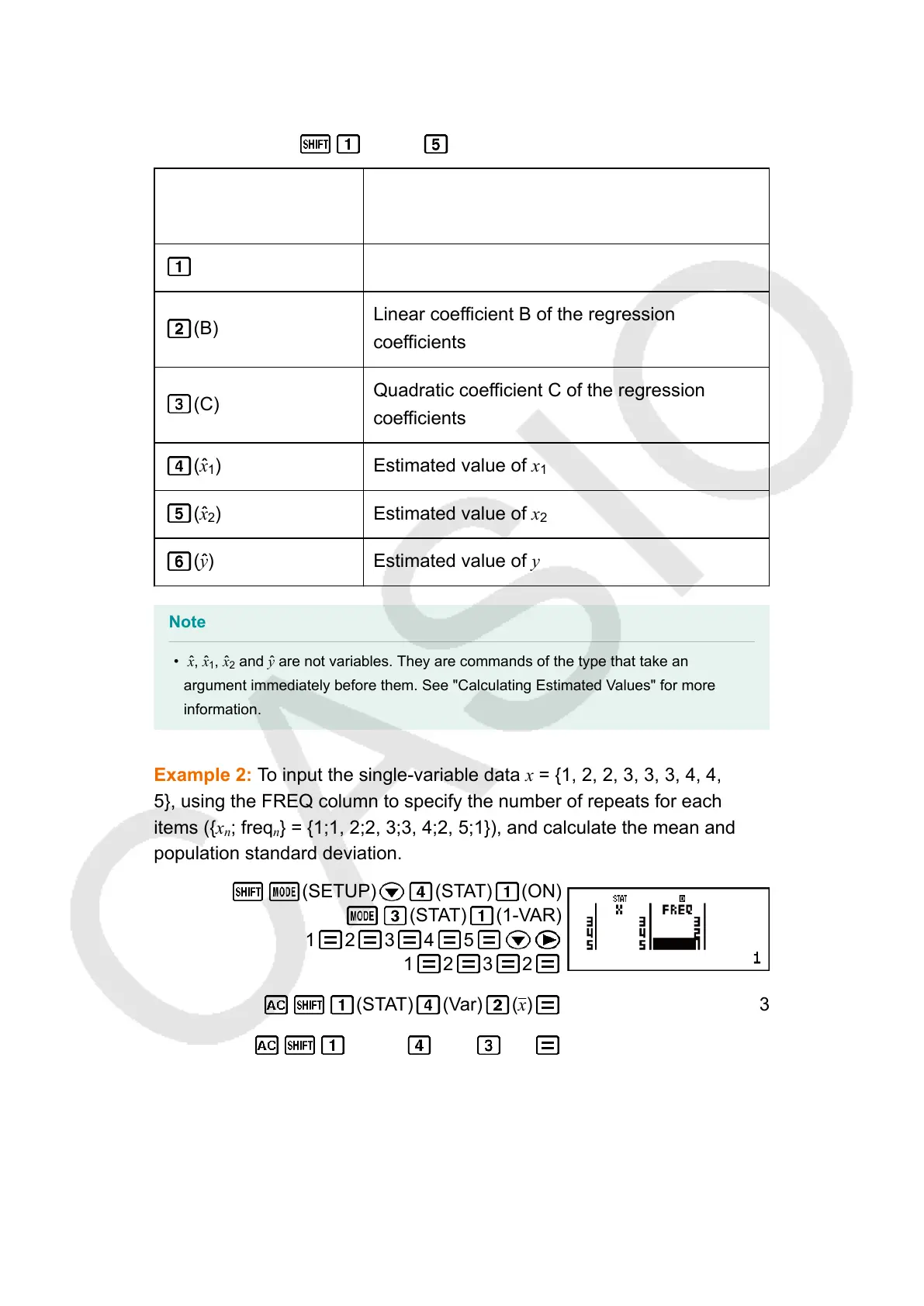 Commands when Quadratic Regression Calculation (_+CX