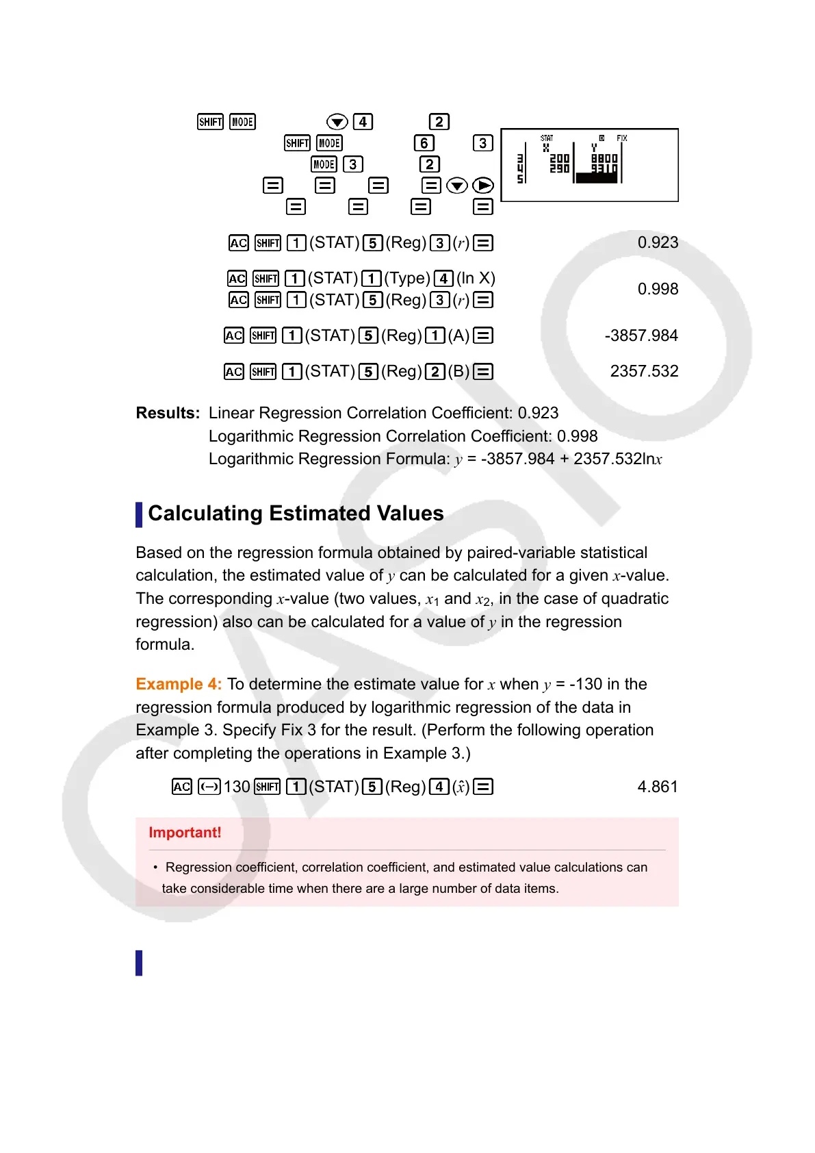 • Regression coefficient, correlation coefficient, and estimated value calculations can