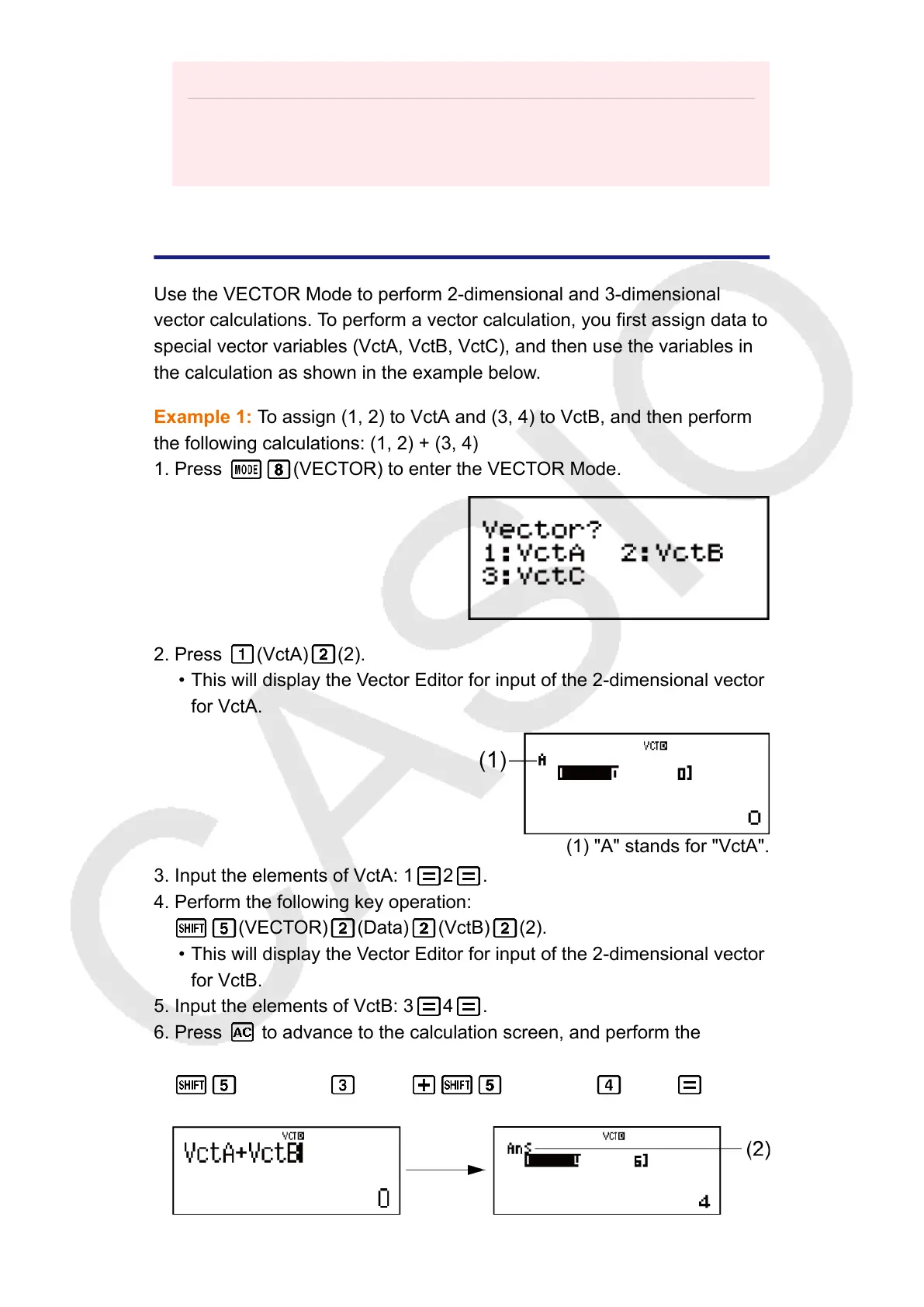 Example 1: To assign (1, 2) to VctA and (3, 4) to VctB, and then perform