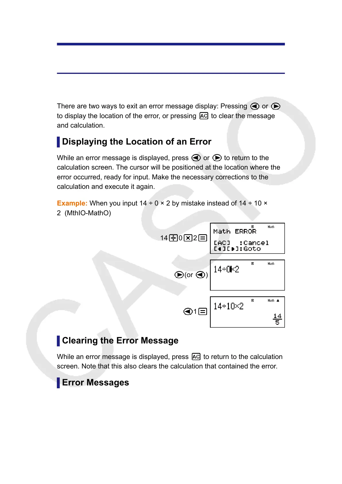 Example: When you input 14 ÷ 0 × 2 by mistake instead of 14 ÷ 10 ×