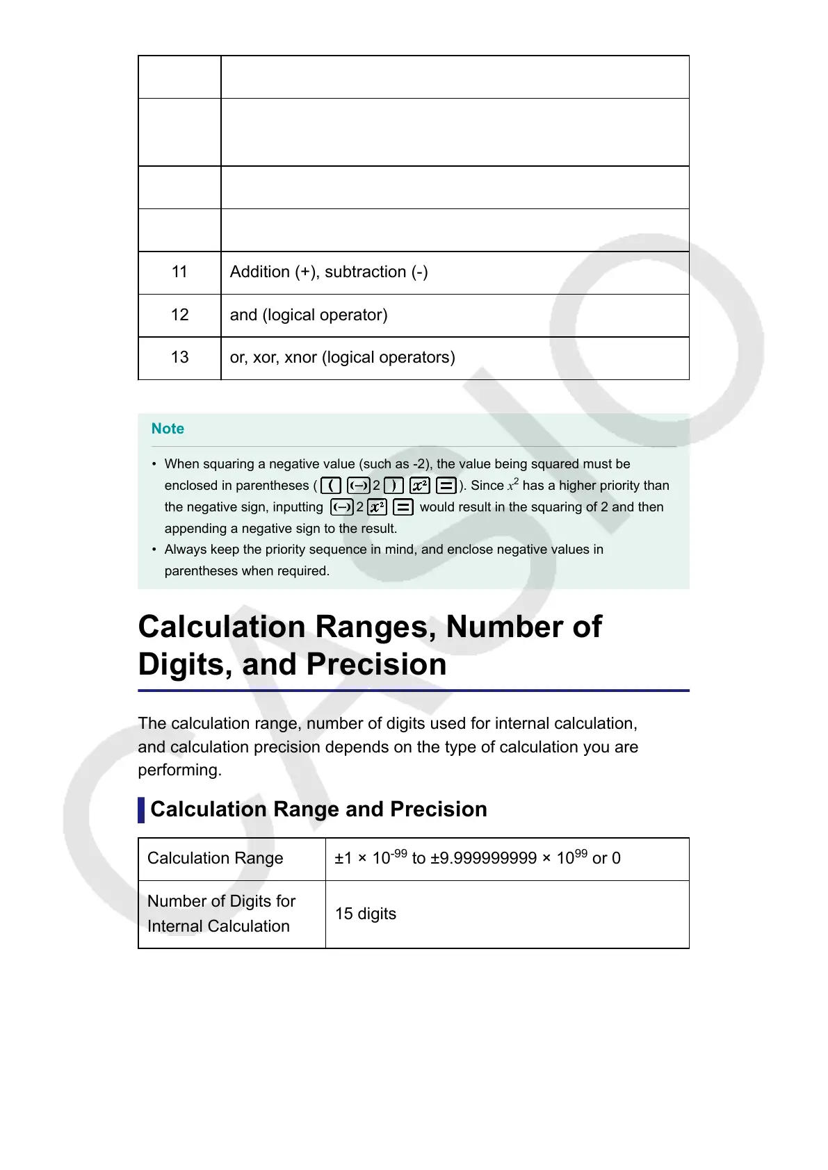 Calculation Range and Precision