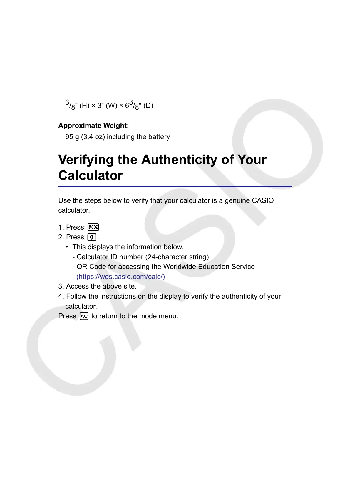 Use the steps below to verify that your calculator is a genuine CASIO