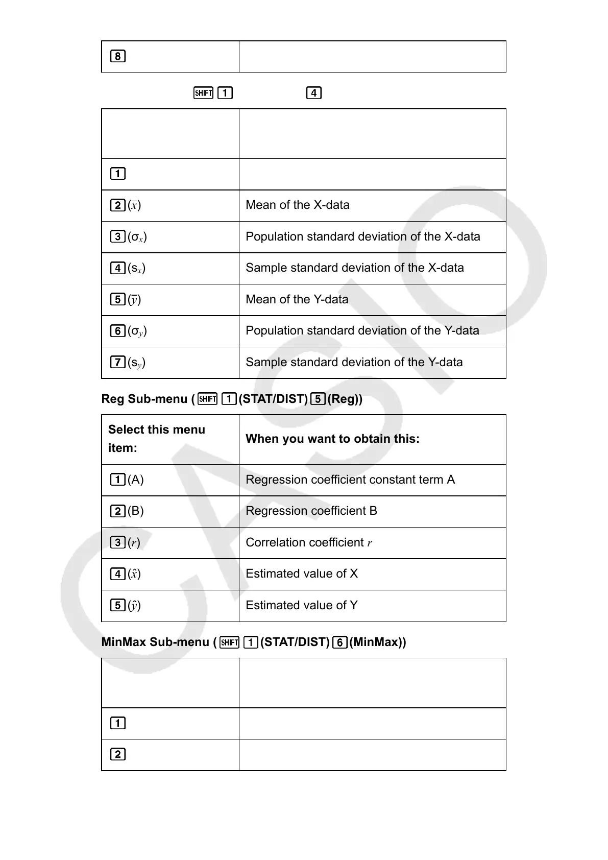 Reg Sub-menu ( (STAT/DIST) (Reg))