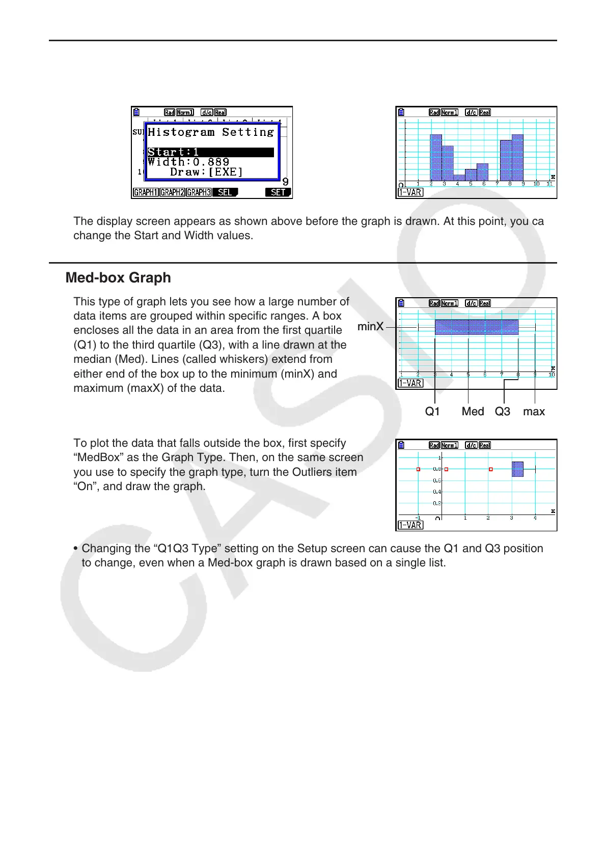 • Changing the “Q1Q3 Type” setting on the Setup screen can cause the Q1 and Q3 positions