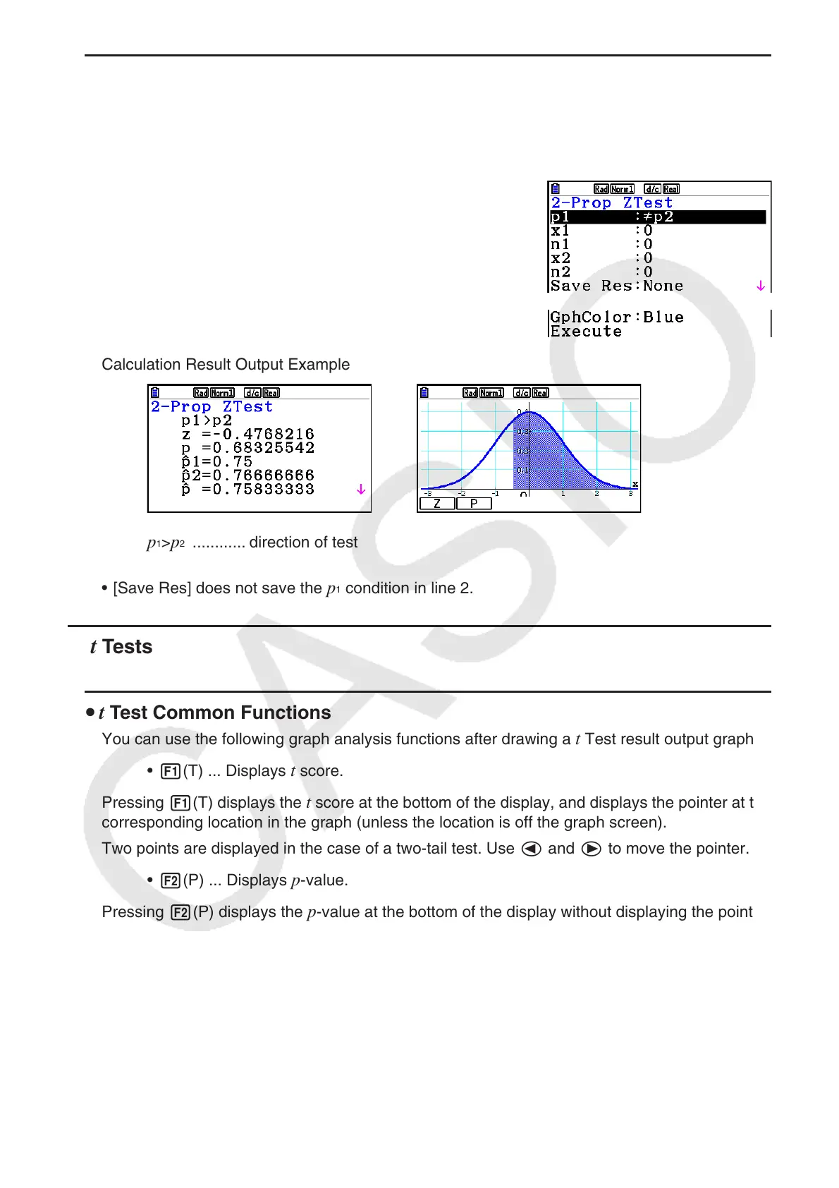Two points are displayed in the case of a two-tail test. Use d and e to move the pointer.