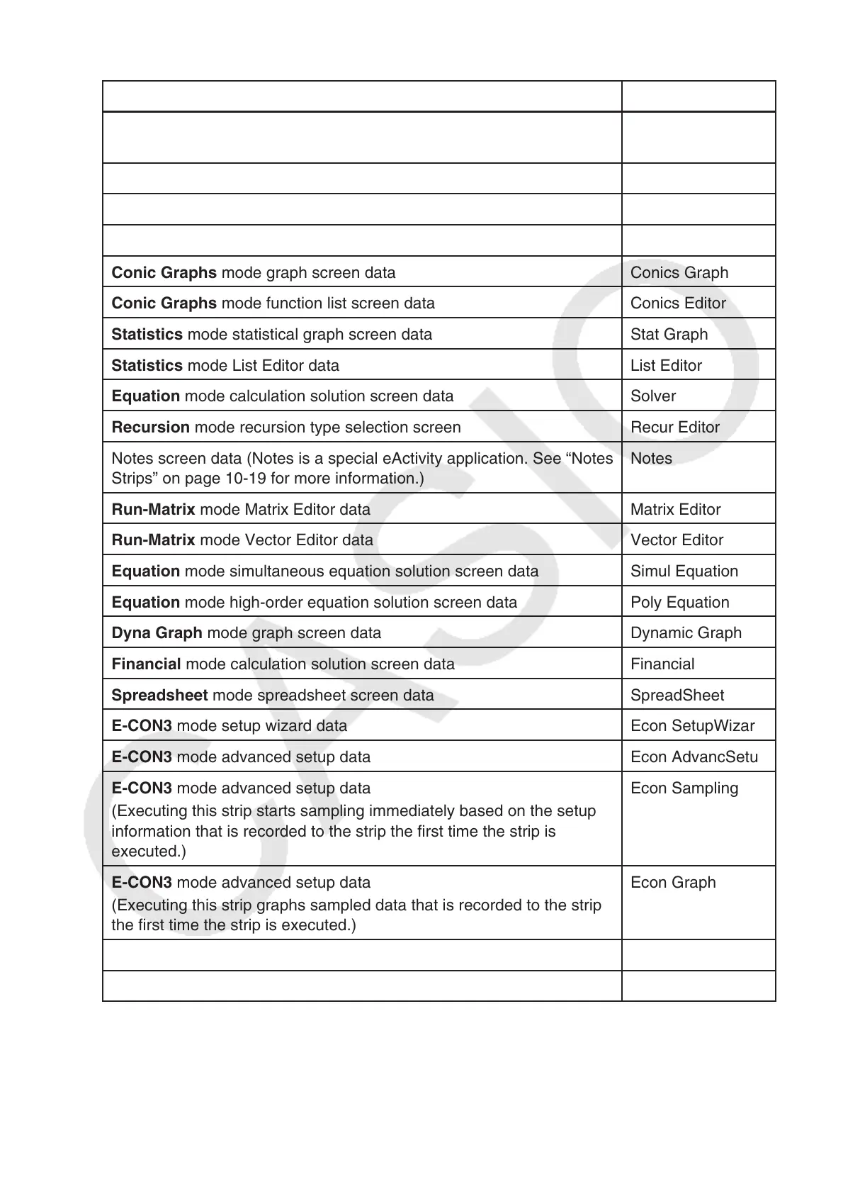 Notes screen data (Notes is a special eActivity application. See “Notes