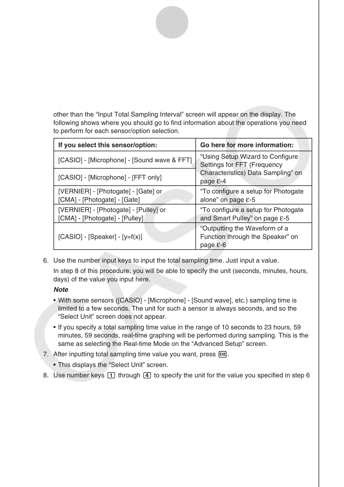 • With some sensors ([CASIO] - [Microphone] - [Sound wave], etc.) sampling time is