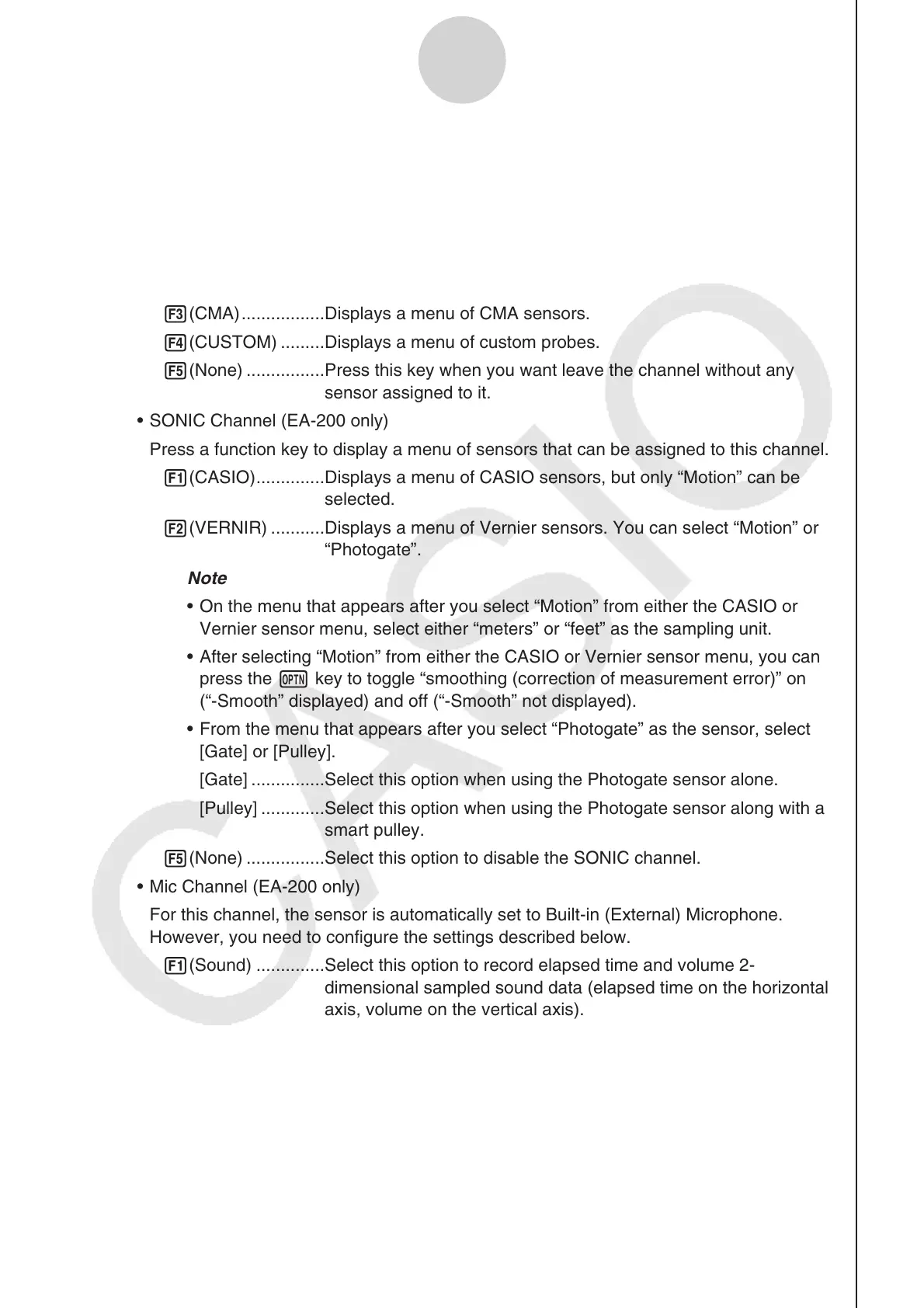 • After selecting “Motion” from either the CASIO or Vernier sensor menu, you can
