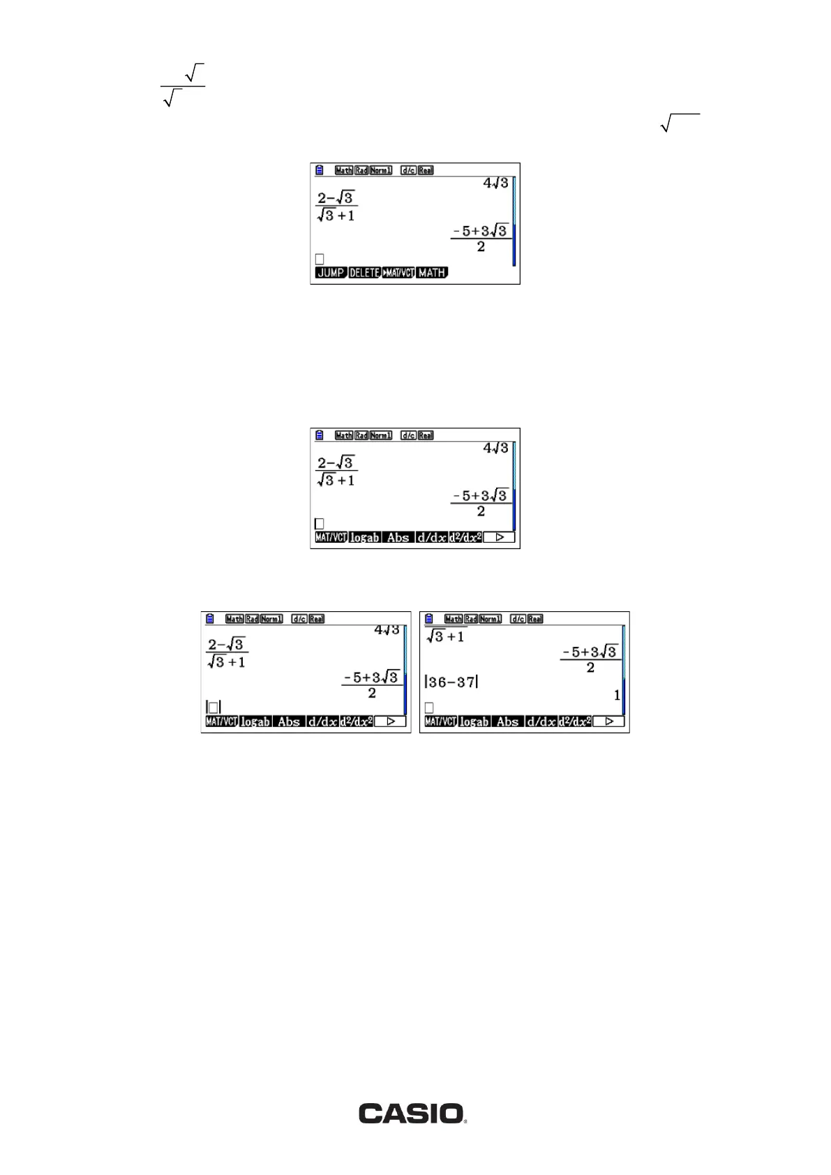 the denominator. After typing root 3, scroll to the right to avoid typing the square root of