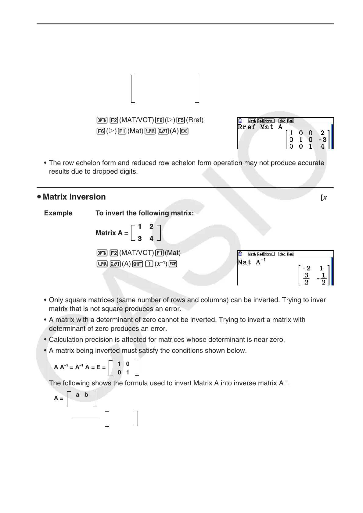 u Reduced Row Echelon Form [OPTN] - [MAT/VCT] - [Rref]