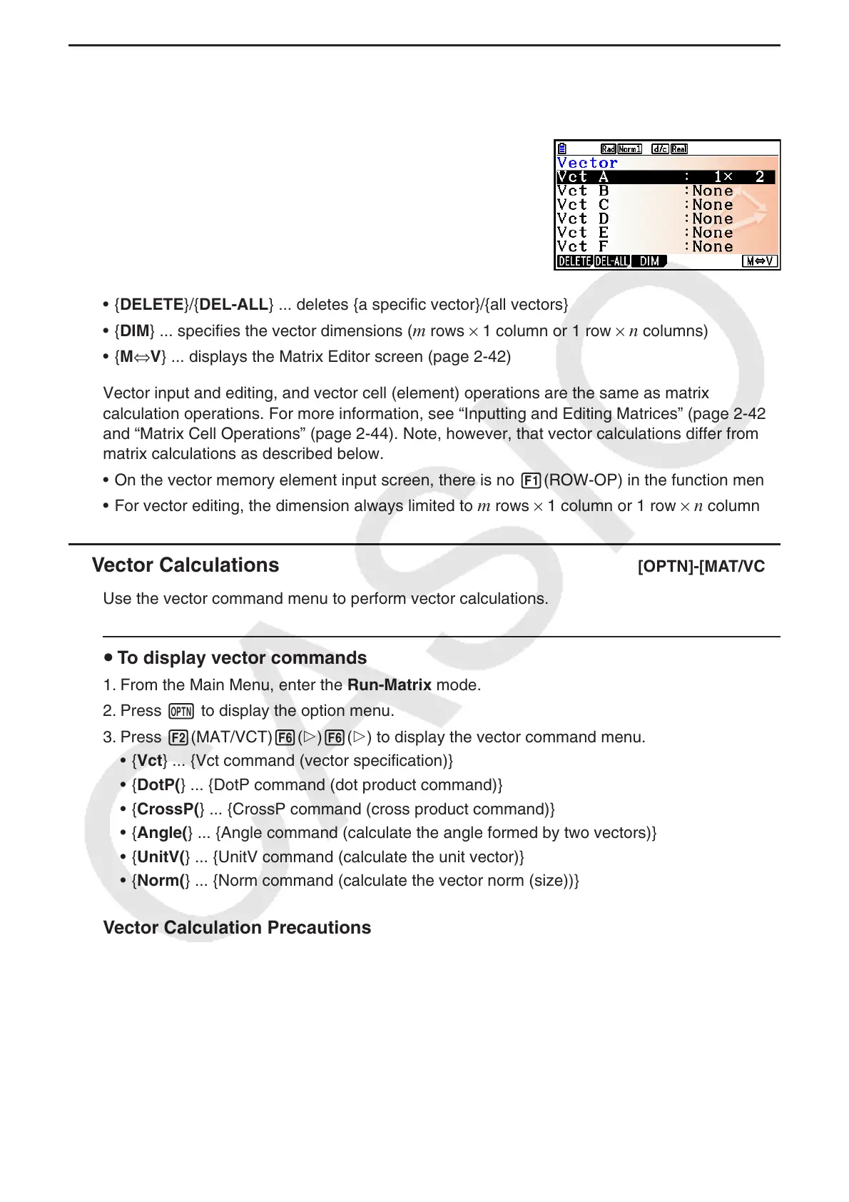 k Vector Calculations [OPTN]-[MAT/VCT]