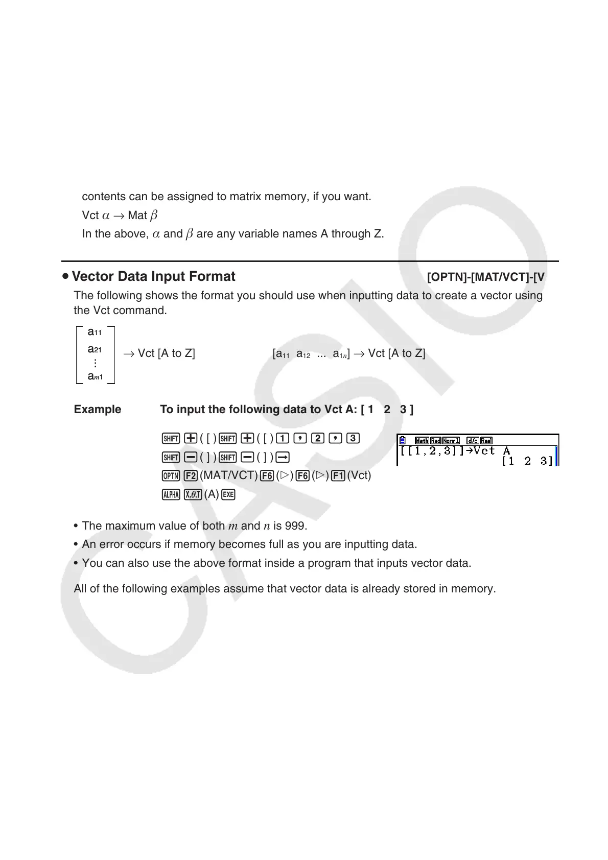u Vector Data Input Format [OPTN]-[MAT/VCT]-[Vct]