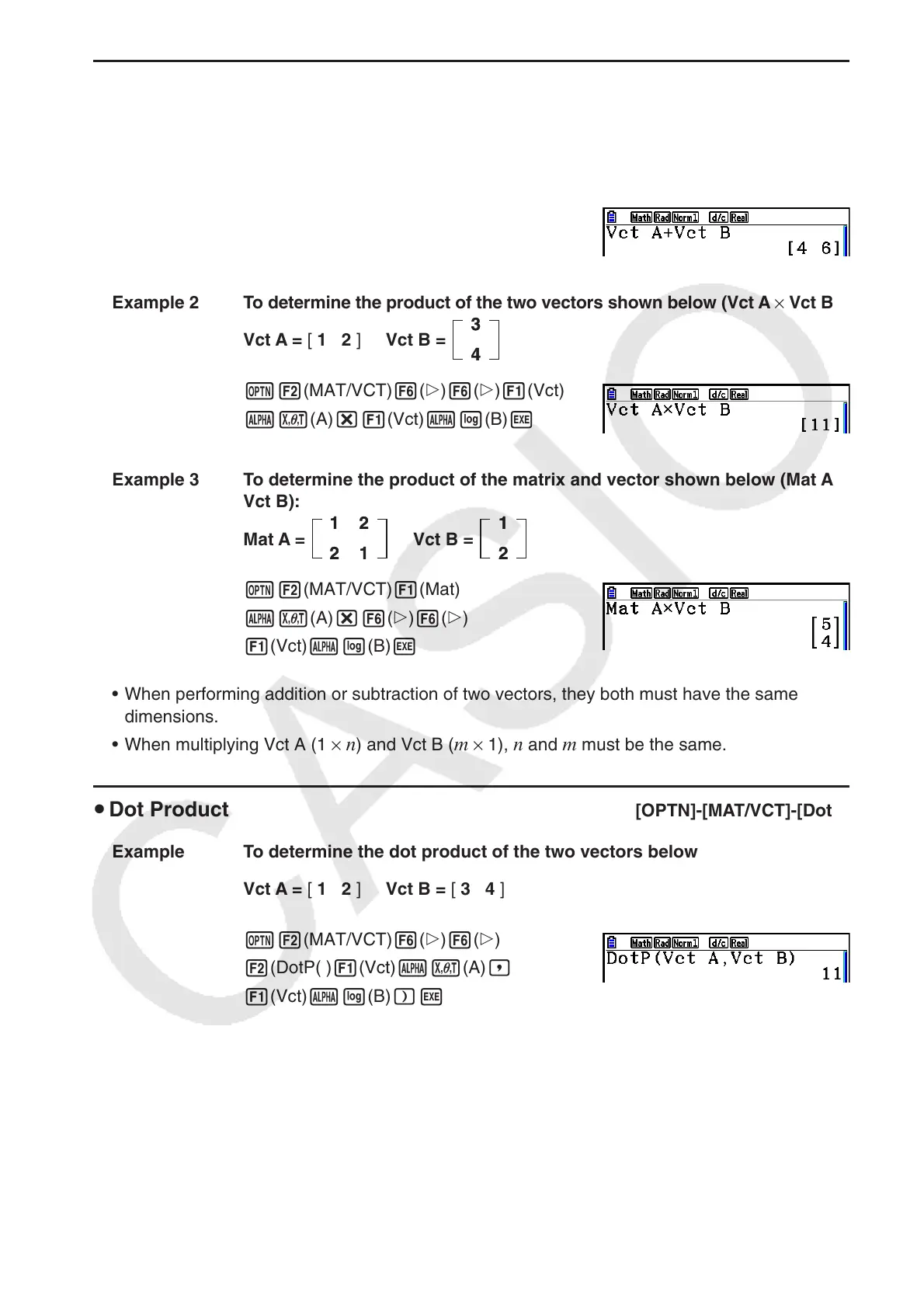 u Vector Addition, Subtraction, and Multiplication [OPTN]-[MAT/VCT]-[Vct]
