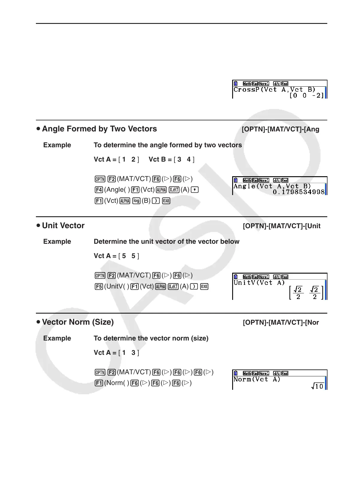 u Angle Formed by Two Vectors [OPTN]-[MAT/VCT]-[Angle]