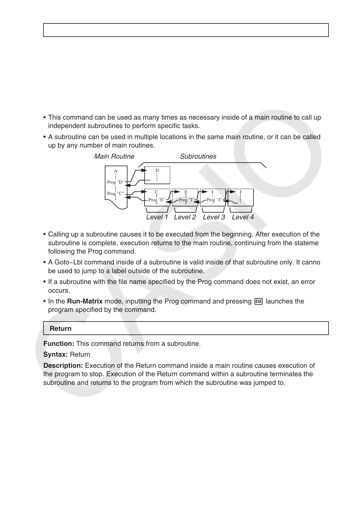 • Calling up a subroutine causes it to be executed from the beginning. After execution of the