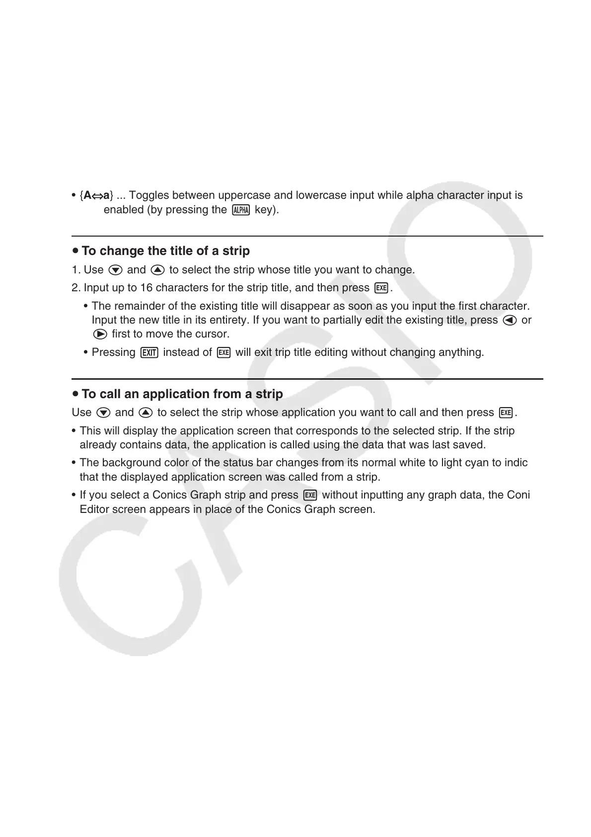 a } ... Toggles between uppercase and lowercase input while alpha character input is