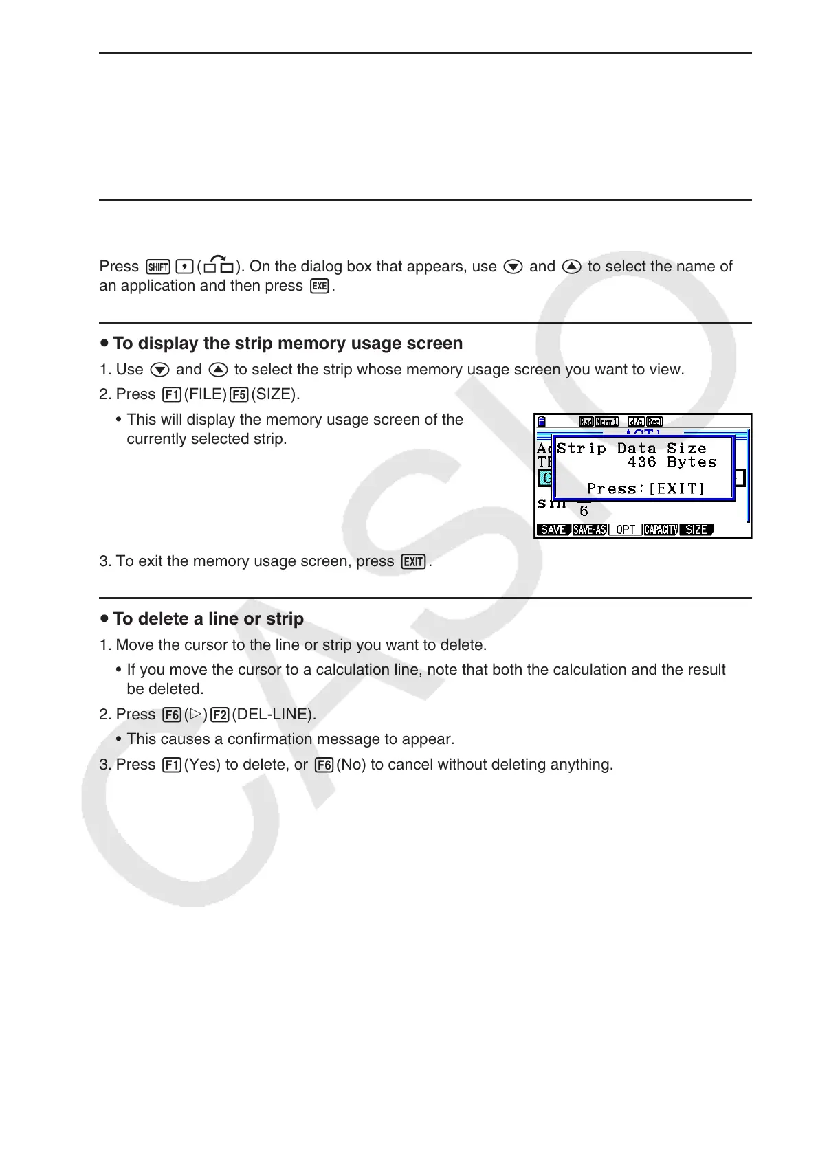 1. Use c and f to select the strip whose memory usage screen you want to view.