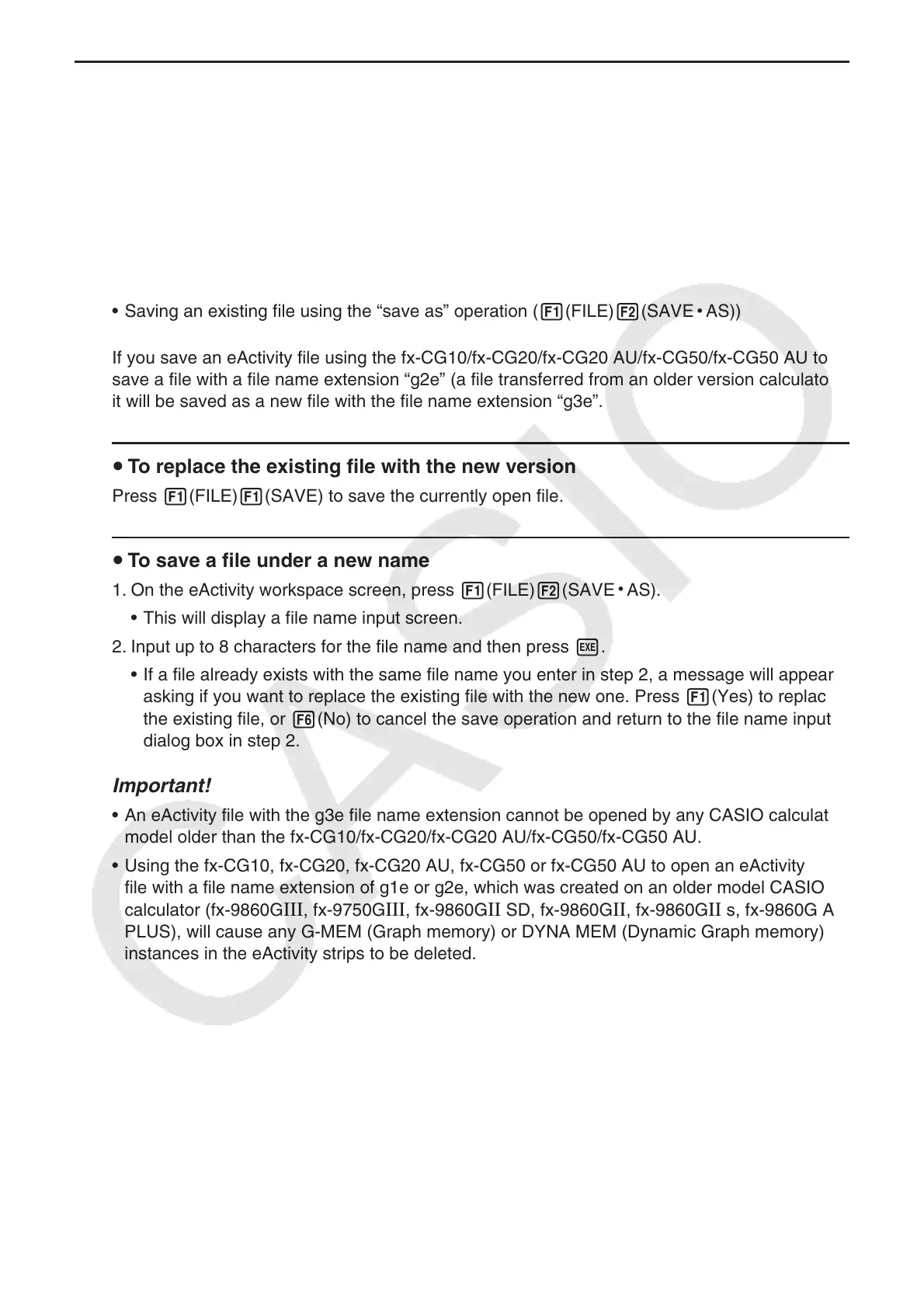 fx-CG20/fx-CG20 AU/fx-CG50/fx-CG50 AU to save an eActivity file always will cause the