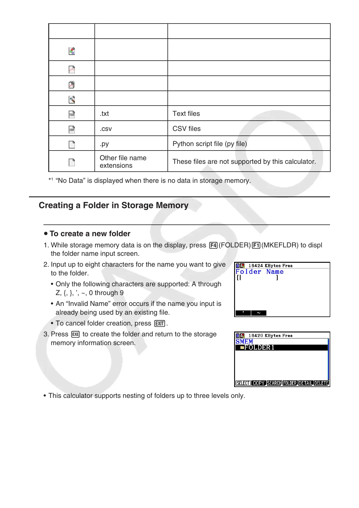 1. While storage memory data is on the display, press 4(FOLDER)1(MKEFLDR) to display