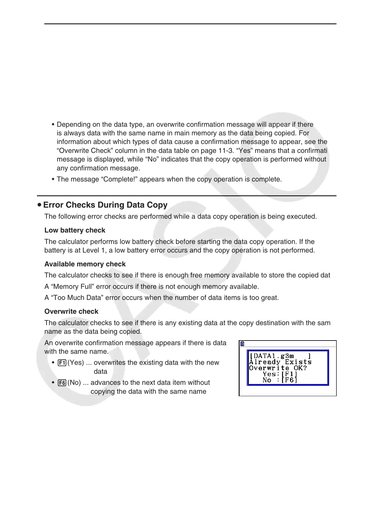 “Overwrite Check” column in the data table on page 11-3. “Yes” means that a confirmation