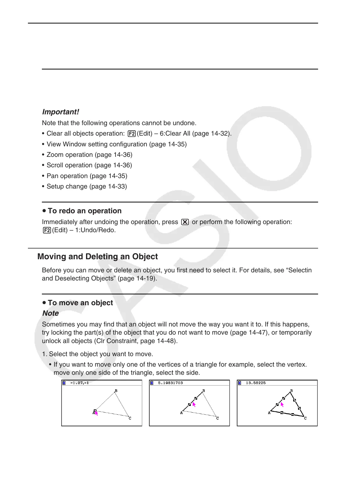 • Clear all objects operation: 2(Edit) – 6:Clear All (page 14-32).
