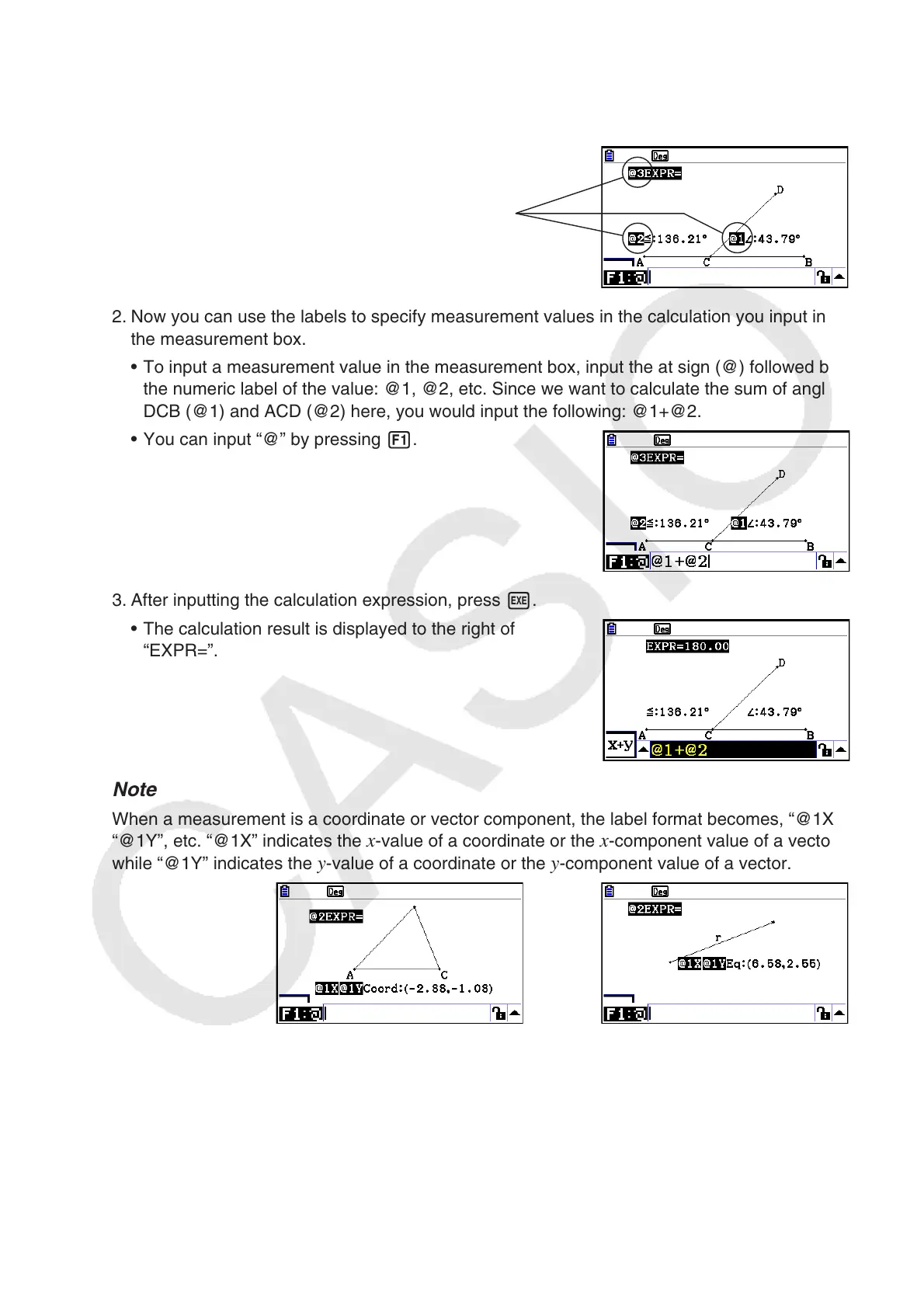 When a measurement is a coordinate or vector component, the label format becomes, “@1X”,
