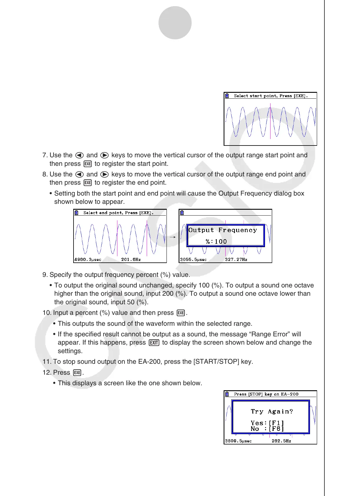 If the specified result cannot be output as a sound, the message “Range Error” will