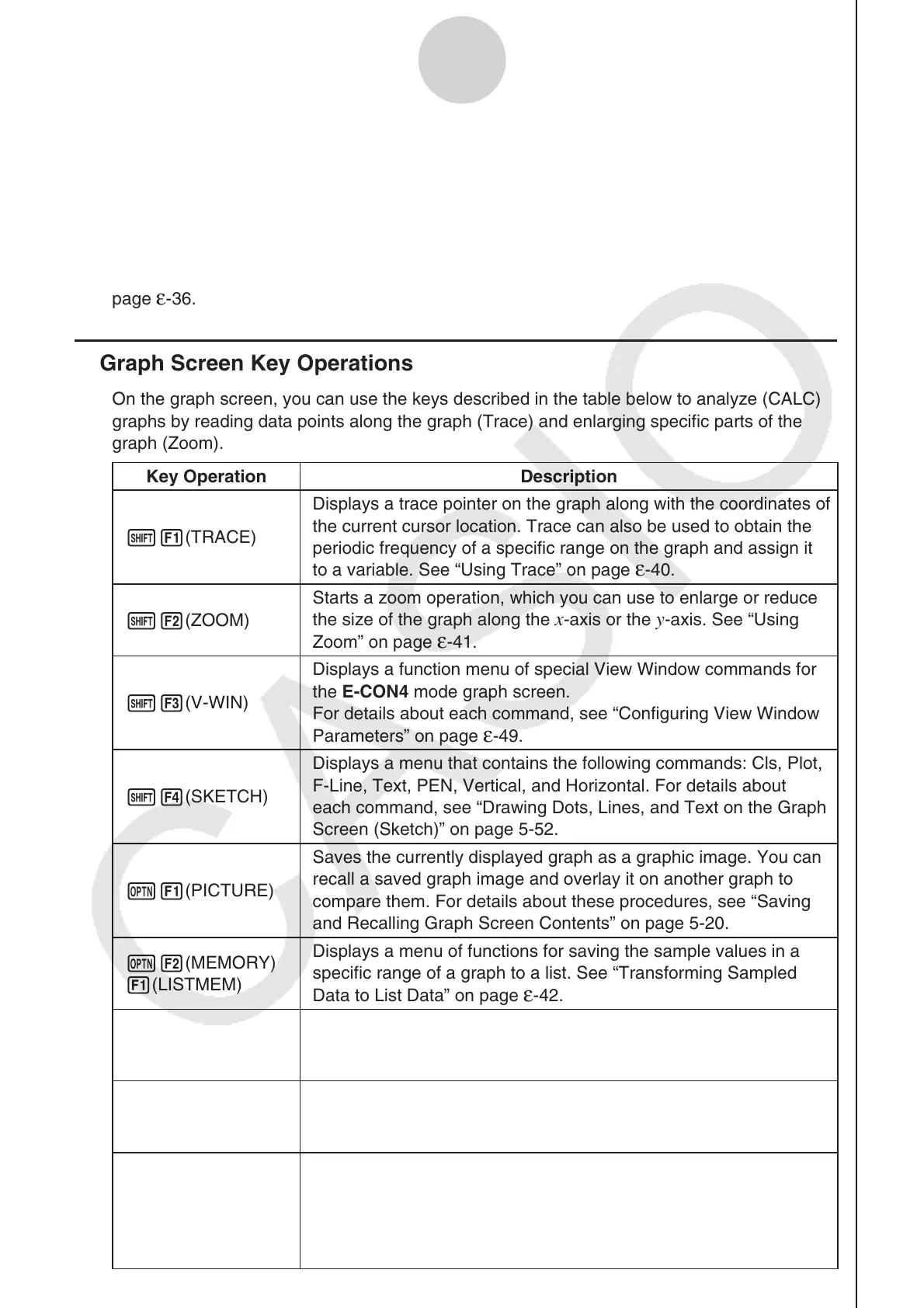 On the graph screen, you can use the keys described in the table below to analyze (CALC)