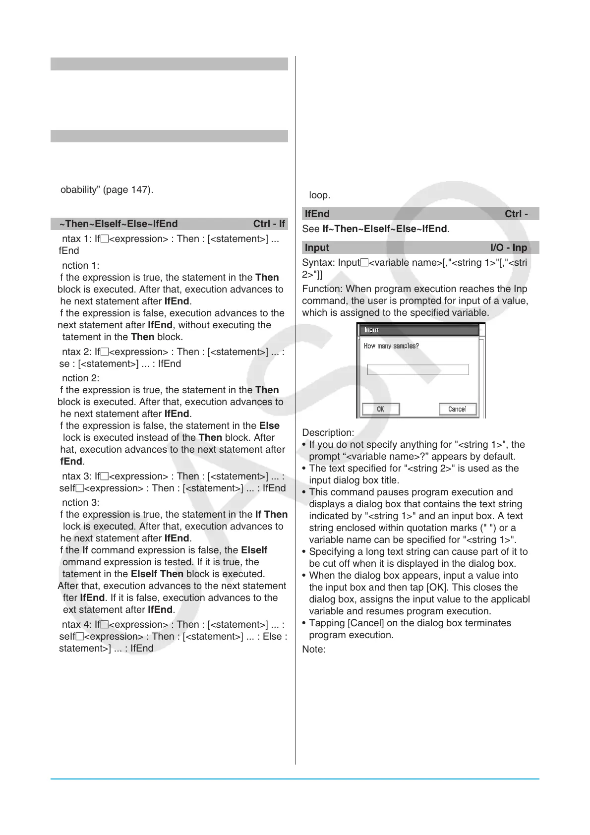 • During execution of the Input command, program