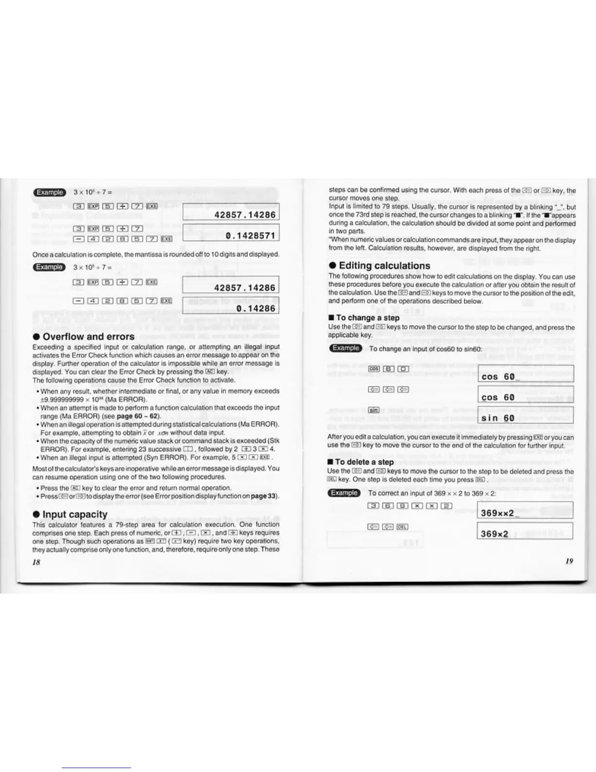 Casio FX-D400 - Editing Calculations; To Change a Step; To Delete a Step; Overflow and Errors
