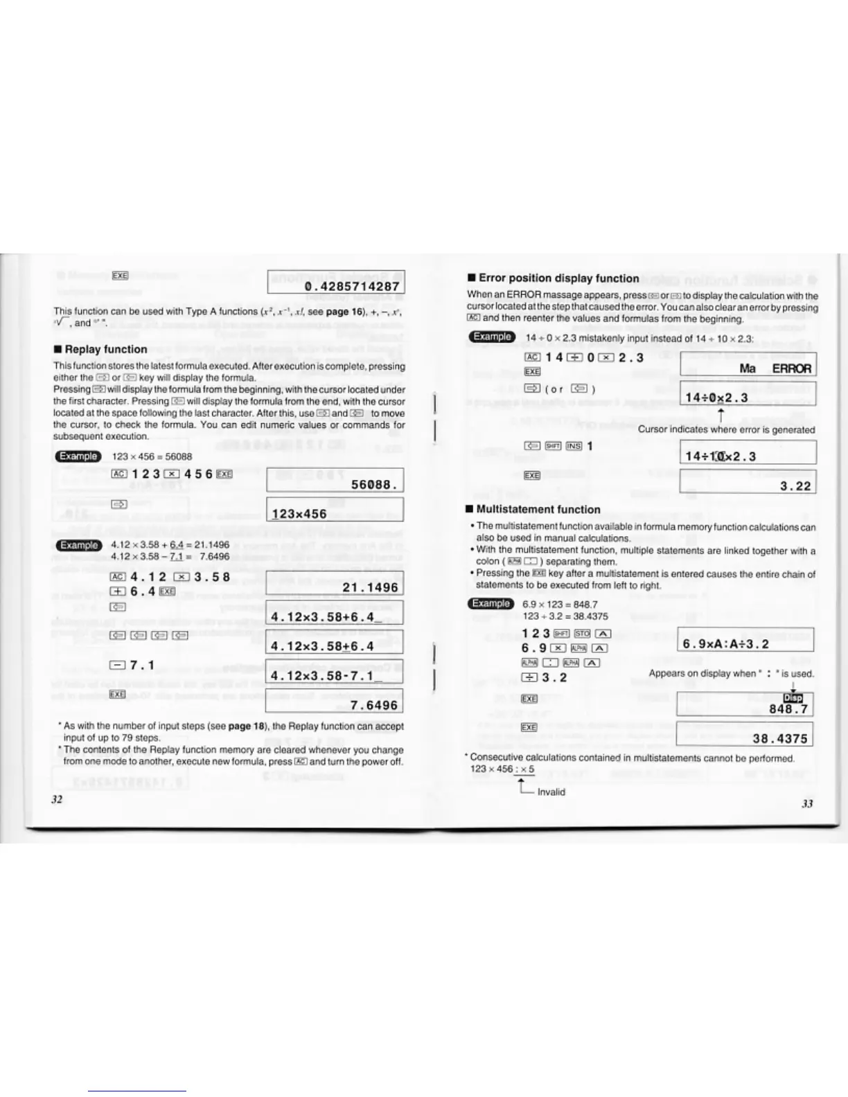Casio FX-D400 - Error Position Display; Multistatement Function