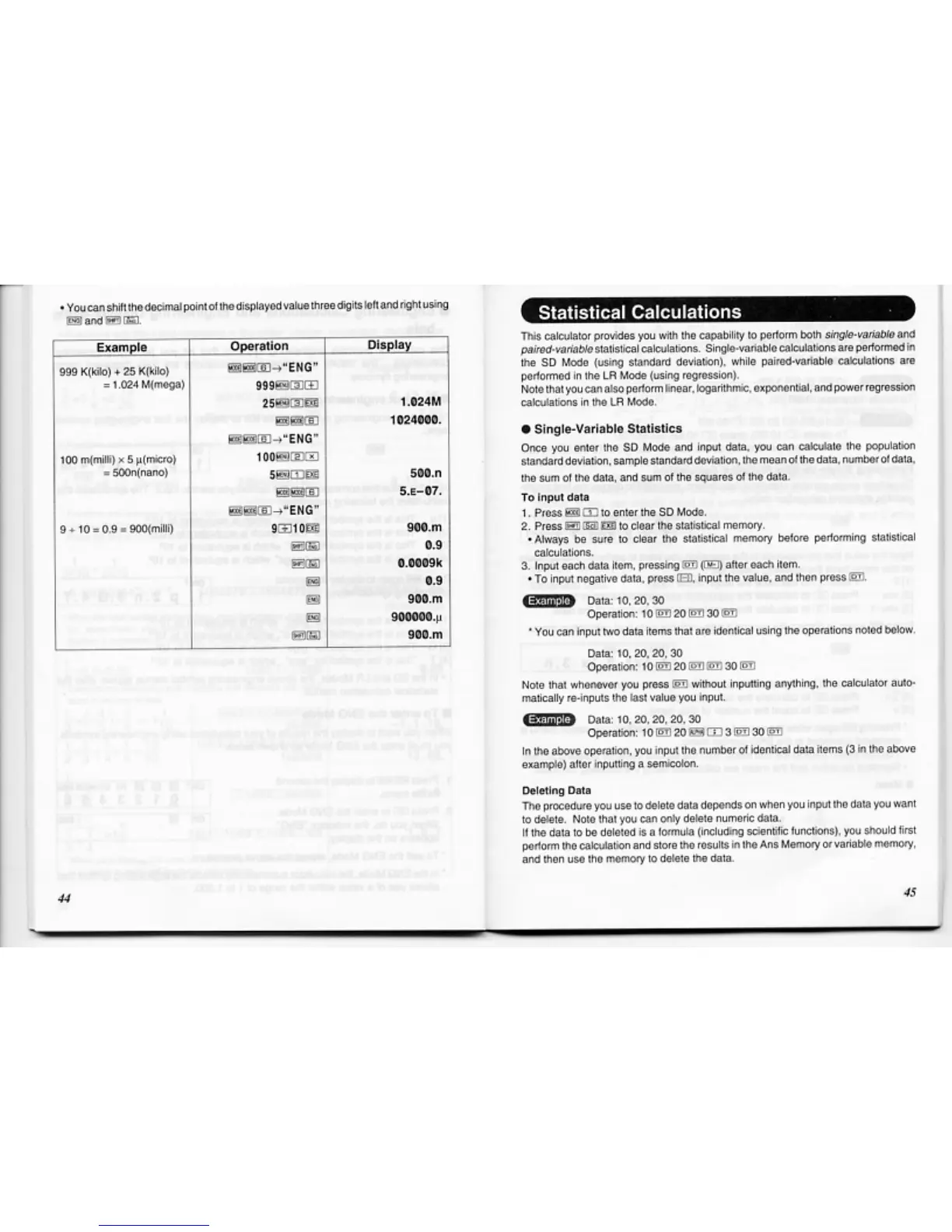 Casio FX-D400 - Statistical Calculations; Single-Variable Statistics; Input Data; Deleting Data