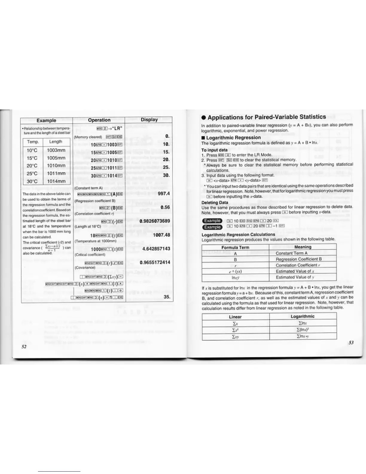 Casio FX-D400 - Applications for Paired-Variable Statistics; Logarithmic Regression; Logarithmic Regression Calculations