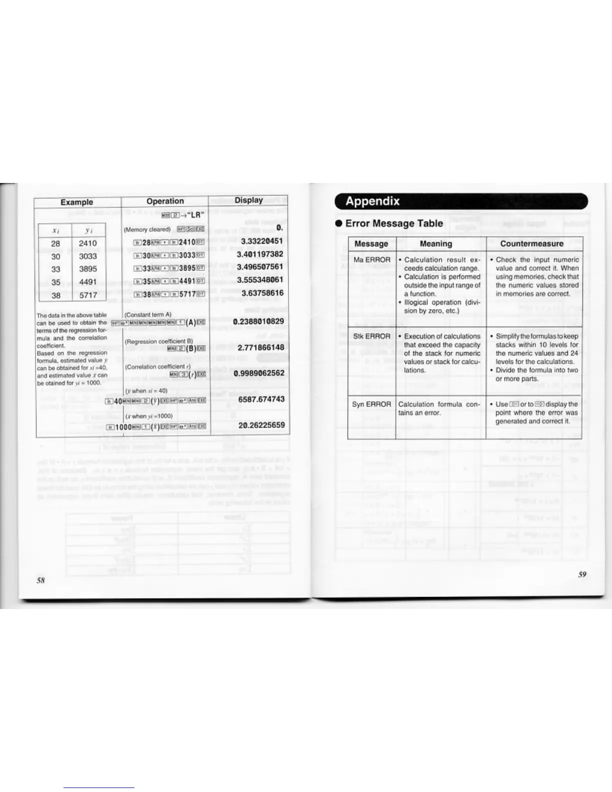 Casio FX-D400 - Appendix; Error Message Table