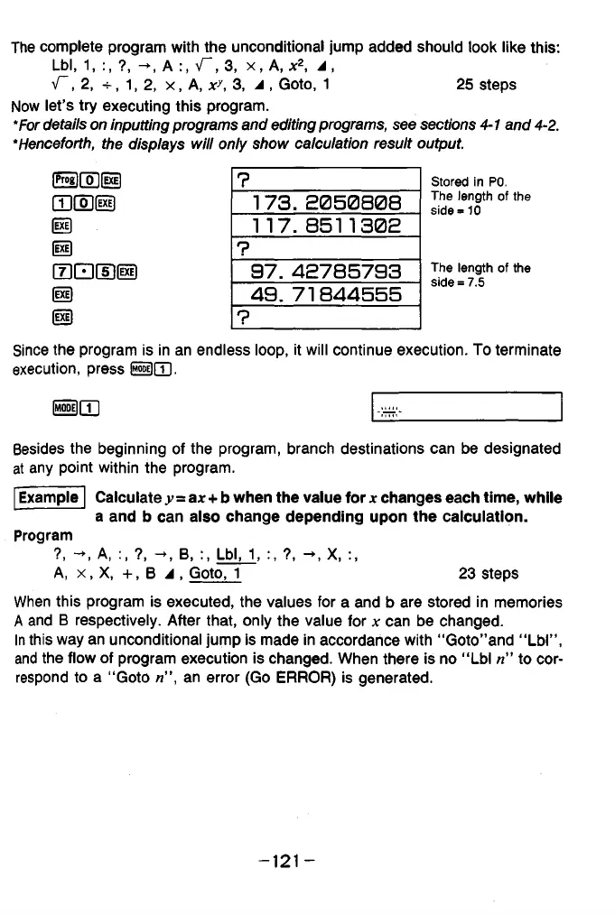 In this way an unconditional jump is made in accordance with “ Goto” and “ Lbl” ,
