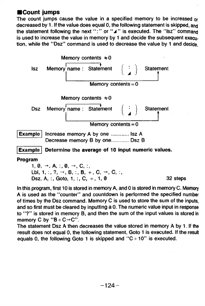 the statement following the next or “ J ” is executed. The “ Isz” command