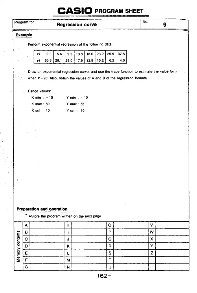 Perform exponential regression of the following data: