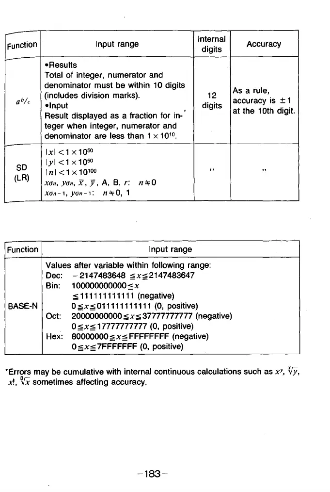 * Errors may be cumulative with internal continuous calculations such as X>. Ty,