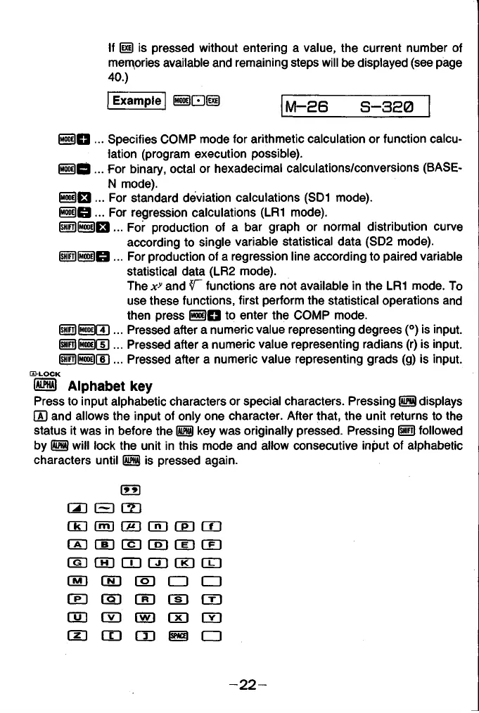 status it was in before the Alpha key was originally pressed. Pressing Shift followed