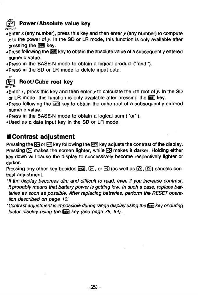 •Press following the §D key to obtain the cube root of a subsequently entered