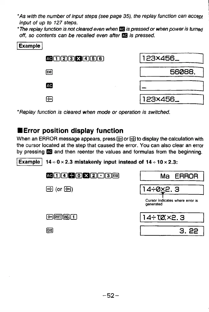 When an ERROR message appears, press B or (H) to display the calculation with