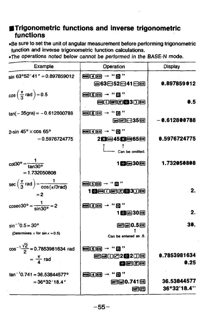 •Be sure to set the unit of angular measurement before performing trigonometric