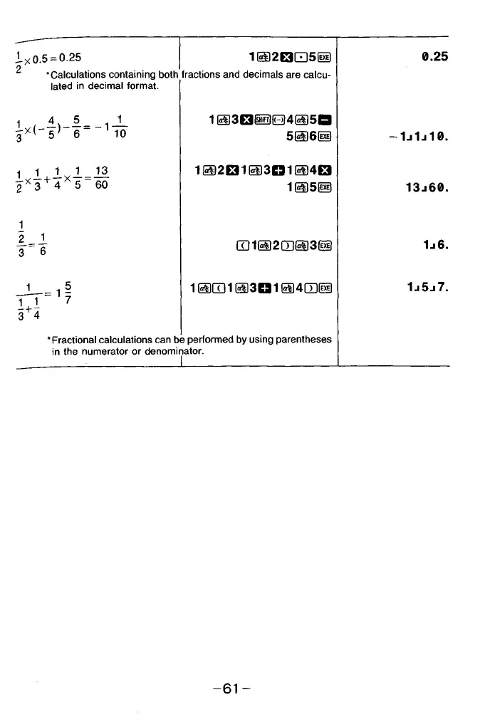 Fractional calculations can be performed by using parentheses