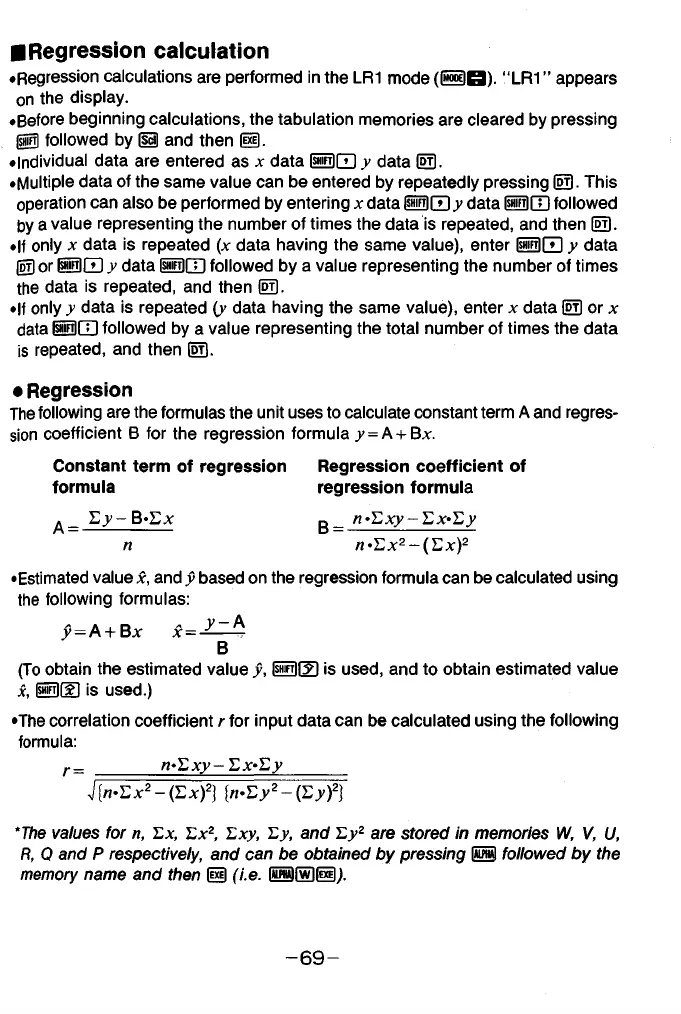 •Regression calculations are performed in the LR1 mode (S B ) - “ LR1” appears